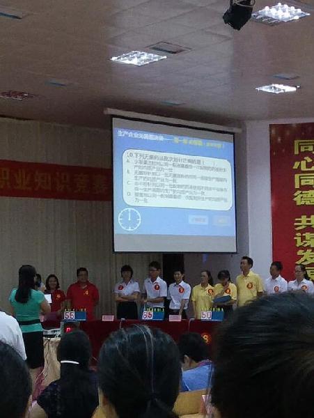 經(jīng)過三個月的初賽、復(fù)賽迎來了今天的決賽,生產(chǎn)企業(yè)無菌組決賽共分為三個環(huán)節(jié):必答題,搶答題,風(fēng)險題。在決賽的現(xiàn)場,我們參賽選手反應(yīng)迅速,密切配合,展現(xiàn)豐富的知識,秀出了我們的風(fēng)采。我們公司啦啦隊穿著統(tǒng)一服裝來到現(xiàn)場為我們的選手吶喊、助威!并秀出我們公司的口號“秀出自信,展現(xiàn)自我,非比尋常,長安最強”。
